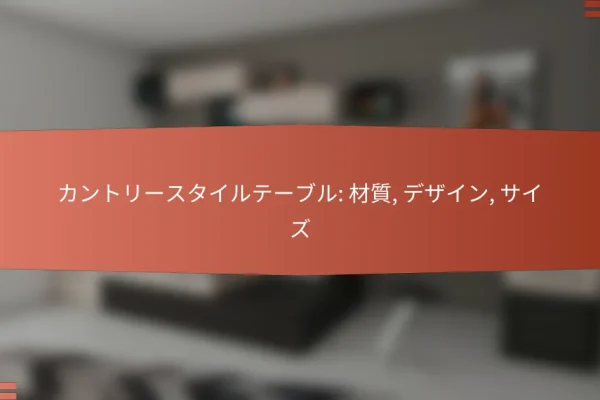 カントリースタイルテーブルは、温かみのあるデザインと実用性を兼ね備えた家具で、主に木材を使用して作られています。このスタイルは、田舎の生活や自然を感じさせる要素が特徴で、素朴で親しみやすい外観を持っています。 カントリースタイルテーブルとは何ですか? カントリースタイルテーブルは、温かみのあるデザインと実用性を兼ね備えた家具で、主に木材を使用して作られています。このスタイルは、田舎の生活や自然を感じさせる要素が特徴です。 カントリースタイルテーブルの定義 カントリースタイルテーブルは、シンプルで機能的なデザインを持ち、通常は無垢材や再生木材から作られています。これらのテーブルは、手作り感や伝統的な工芸技術が反映されていることが多いです。 一般的に、カントリースタイルはナチュラルな色合いやテクスチャーを重視し、装飾は控えめです。これにより、居心地の良い雰囲気を作り出します。 カントリースタイルの特徴 カントリースタイルテーブルの特徴には、頑丈な構造、温かみのある色合い、そして自然な木目があります。これらのテーブルは、しばしば手作りの仕上げが施され、独自の個性を持っています。 また、デザインには曲線や丸みを帯びた形状が見られ、柔らかい印象を与えます。装飾的な要素は少なく、実用性が重視されています。 カントリースタイルテーブルの歴史 カントリースタイルテーブルの起源は、農村地域の生活様式にさかのぼります。19世紀から20世紀初頭にかけて、家庭での食事や集まりを重視する文化が広まりました。 このスタイルは、特にアメリカやヨーロッパの田舎で人気があり、地域ごとの伝統や素材が反映されています。時間が経つにつれて、カントリースタイルは現代のインテリアデザインにも影響を与えています。 カントリースタイルテーブルの用途 カントリースタイルテーブルは、ダイニングルームやキッチンでの食事に最適です。広い天板を持つため、家族や友人との集まりにも適しています。 また、作業スペースとしても利用でき、趣味やDIYプロジェクトにも役立ちます。カントリースタイルのテーブルは、居心地の良い空間を作り出すための中心的な要素となります。 カントリースタイルテーブルの材質は何ですか? カントリースタイルテーブルの材質は主に木材ですが、合成材や金属、ガラスも使用されることがあります。これらの材質は、デザインや機能性、耐久性に影響を与えます。 一般的な材質の種類 カントリースタイルテーブルでよく使われる材質には、無垢材、合板、MDF(中密度繊維板)などがあります。無垢材は自然な風合いが魅力ですが、価格が高めです。合成材はコストパフォーマンスに優れ、デザインの自由度も高いです。 木材の特性と利点 木材は温かみがあり、独特の風合いを持つため、カントリースタイルにぴったりです。無垢材は耐久性が高く、長持ちしますが、湿気や温度変化に敏感です。適切なメンテナンスを行うことで、木材の美しさを保つことができます。 合成材の選択肢と特徴 合成材は、コストを抑えつつ多様なデザインが可能です。MDFや合板は軽量で加工が容易なため、DIYプロジェクトにも適しています。ただし、耐久性は無垢材に劣るため、使用環境を考慮する必要があります。 金属やガラスの使用例 金属やガラスは、カントリースタイルテーブルにモダンなアクセントを加えることができます。金属脚は安定性を提供し、ガラス天板は開放感を演出します。これらの素材を組み合わせることで、ユニークなデザインが実現できます。 カントリースタイルテーブルのデザインはどのようなものですか? カントリースタイルテーブルは、温かみのある自然な素材とシンプルなデザインが特徴です。一般的に、木材を使用し、素朴で親しみやすい外観を持っています。 人気のデザインスタイル カントリースタイルテーブルには、フレンチカントリー、アメリカンカントリー、シャビーシックなどの人気のデザインスタイルがあります。これらはそれぞれ異なる地域の影響を受けており、色合いや仕上げにバリエーションがあります。 例えば、フレンチカントリーは柔らかい色合いとエレガントな曲線が特徴で、アメリカンカントリーはより粗野で実用的なデザインが多いです。 デザインの要素と特徴 カントリースタイルテーブルのデザインには、自然素材の使用、手作り感、そして機能性が重要な要素です。木材は通常、オーク、パイン、メープルなどが選ばれ、仕上げはオイルやワックスで行われます。 また、テーブルの脚は太めで安定感があり、天板は広めに作られていることが多いです。これにより、家族や友人との集まりに最適なスペースを提供します。 カスタマイズの可能性 カントリースタイルテーブルは、個々の好みに合わせてカスタマイズすることが可能です。色や仕上げ、サイズを変更することで、特定のインテリアに合わせることができます。 